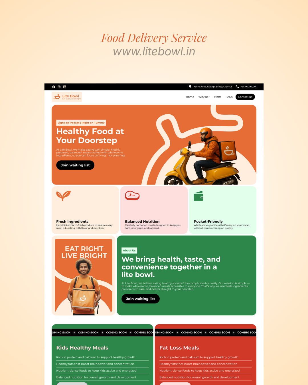 Litebowl is a modern food delivery brand crafted for speed, simplicity, and everyday wellness. Our team at Purple Rocket handled Litebowl’s end-to-end brand build, including visual identity, social media presence, and website design. From clean, appetite-driven branding to a conversion-focused website and consistent social content, every touchpoint was designed to position Litebowl as a fresh, reliable, and scalable food delivery experience.